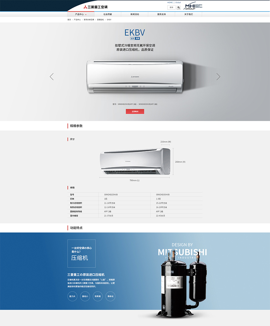 扁平化設(shè)計(jì),去除冗余、厚重和繁雜的裝飾效果,以更豐富產(chǎn)品內(nèi)容展示體現(xiàn)三菱空調(diào)產(chǎn)品優(yōu)勢