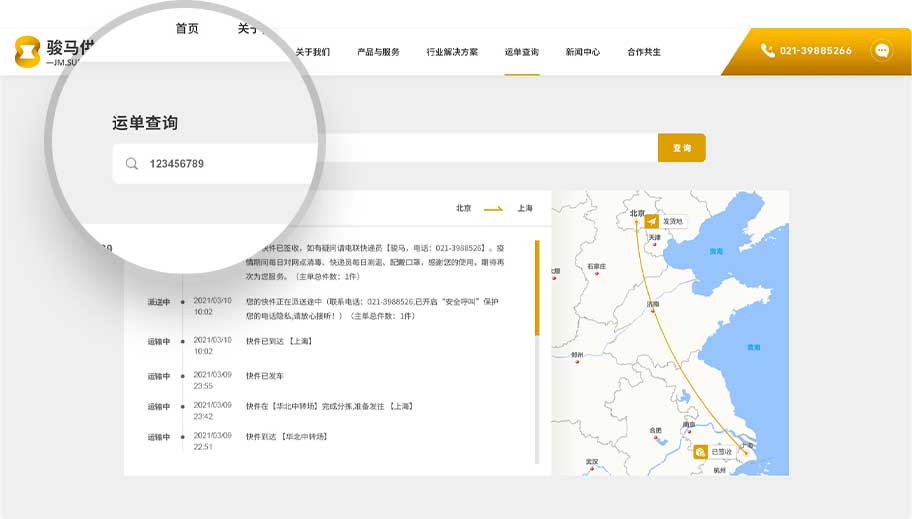 網(wǎng)站加入了在線查詢運(yùn)單功能,通過運(yùn)單號(hào)來跟蹤物流信息,信息每一步可實(shí)時(shí)進(jìn)行更新,形成標(biāo)準(zhǔn)、高效、規(guī)模化的物流產(chǎn)品,打造全國(guó)性的綜合物流網(wǎng)絡(luò)服務(wù)體系。
