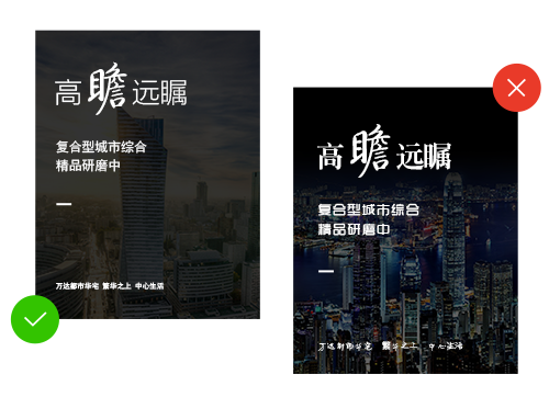 如果設(shè)計稿的文字比較多,首先要注意將圖文分區(qū),這樣可以給大量的文字排版創(chuàng)造空間,也避免了在圖片上加字的問題。其次是創(chuàng)意和版式的完美結(jié)合,充分利用詞組、字母、筆畫的拆分,進(jìn)行無圖的純板式處理。至于橫豎排版問題,從左到右的橫版更符合人的閱讀習(xí)慣。豎版是從古代竹簡的閱讀效果演變而來,比較適合中國風(fēng)或者傳達(dá)意境、情懷的設(shè)計風(fēng)格,配合懷舊的字體使用,如老宋或者清刻等。