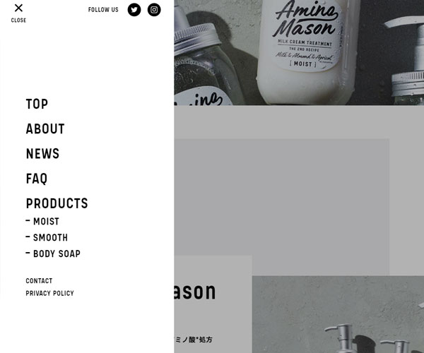 Aminimason是一家知名的洗面霜制作銷售公司,網站的整體風格較為簡潔通透,黑白色調的使用