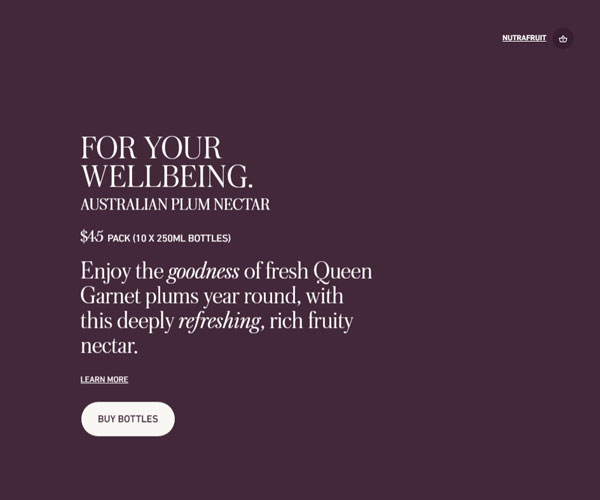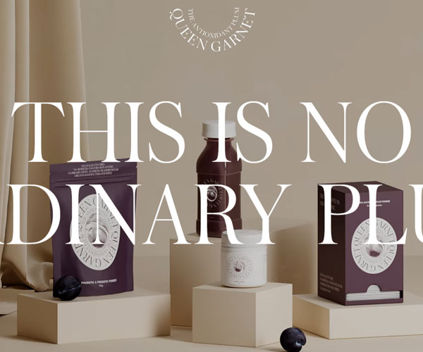 Queengarnet制作不同種類的藍莓果汁飲料,公司網站以藍莓色霸占,藍莓色的低沉格調